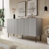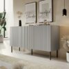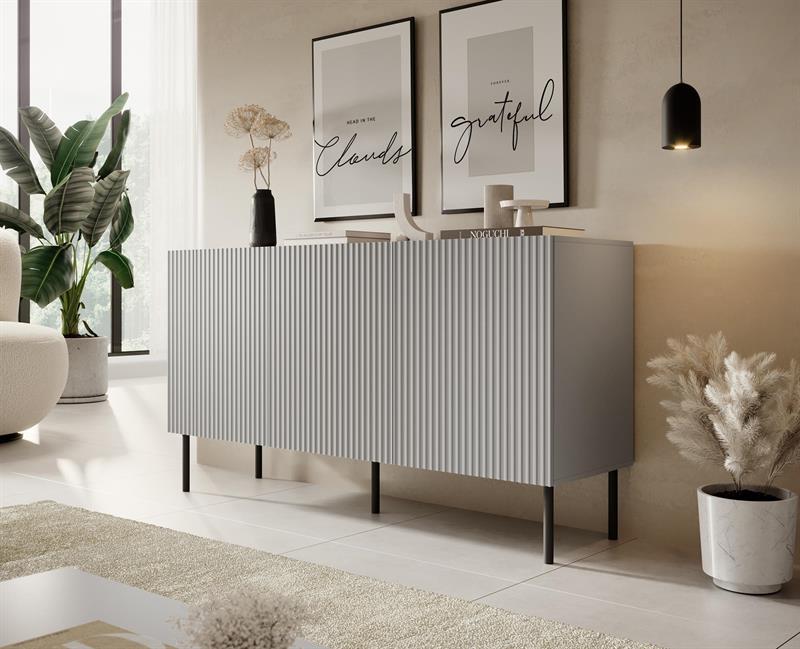 chest, Matmenys: 150/42/81 cm, Medžiaga: laminated chipboard/laminated MDF/kojos – metal, spalva: carcass – šviesi pilka, kojos – juoda