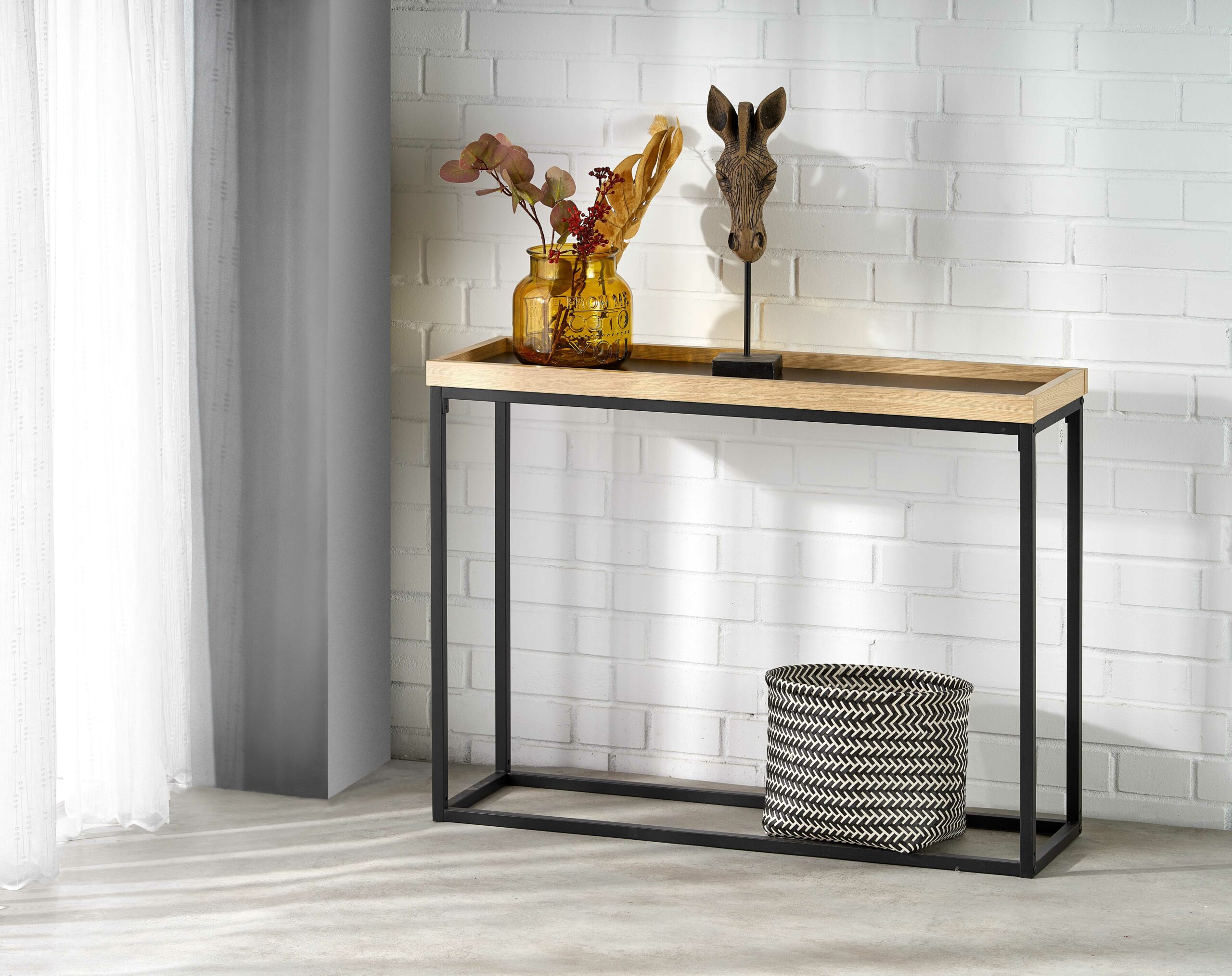 Matmenys: 100/30/74 cm, Medžiaga: laminated chipboard – melamine/milteliniu būdu dažytas plienas, spalva: juoda/naturali