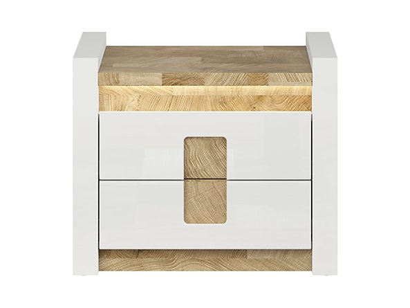 Baltos spalvos kėbulo spalvų derinys juodai balti blizgūs fasadai kartu su Ąžuolas westminster spalvos stalviršiu. Unikali viršaus ir cokolių išvaizda atsiranda dėl folijos, kuri atspindi natūralų Nėries grūdelį ir medienos tekstūrą. Įspūdinga priekinės dalies puošyba – tai elegantiška puošmena, kuri išardo lygius priekinius elementus.