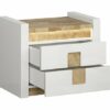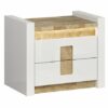 Naktinė spintelė su stalčiais išsiskiria Apšvietimu: Po stalviršiu patalpintas Nėram LED, kuris pabrėžia šiuolaikišką stalviršio dizainą. Baldai