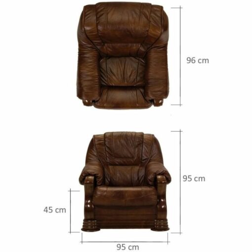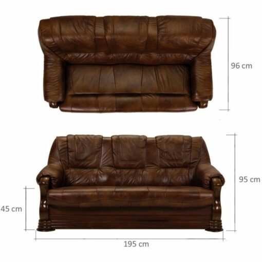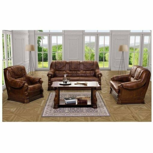 Medžiagos: obicie-natūrali oda be grotelių ir vidinė struktūra- natūralus medis ir Sėdima dalis-gobelenas gobelenas.