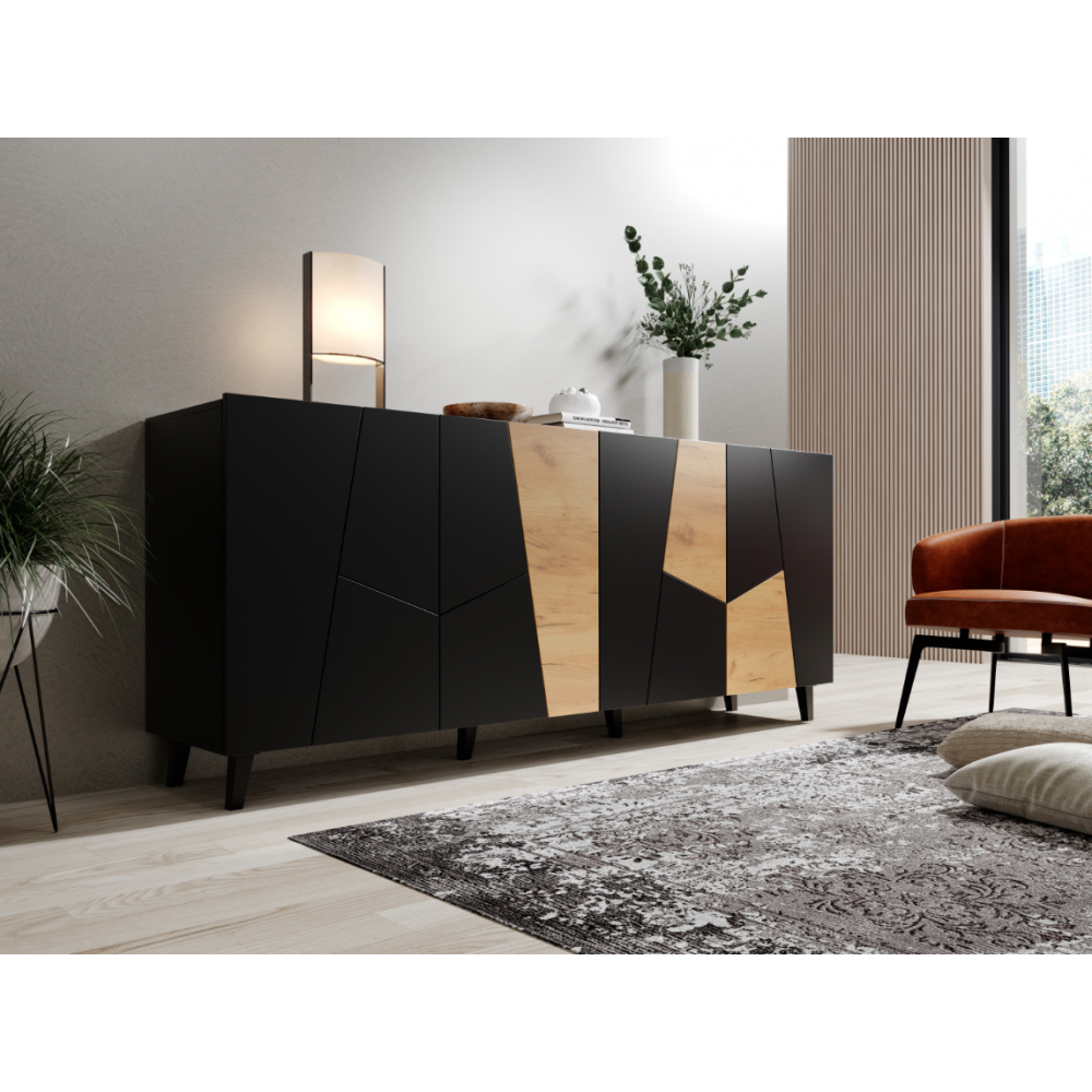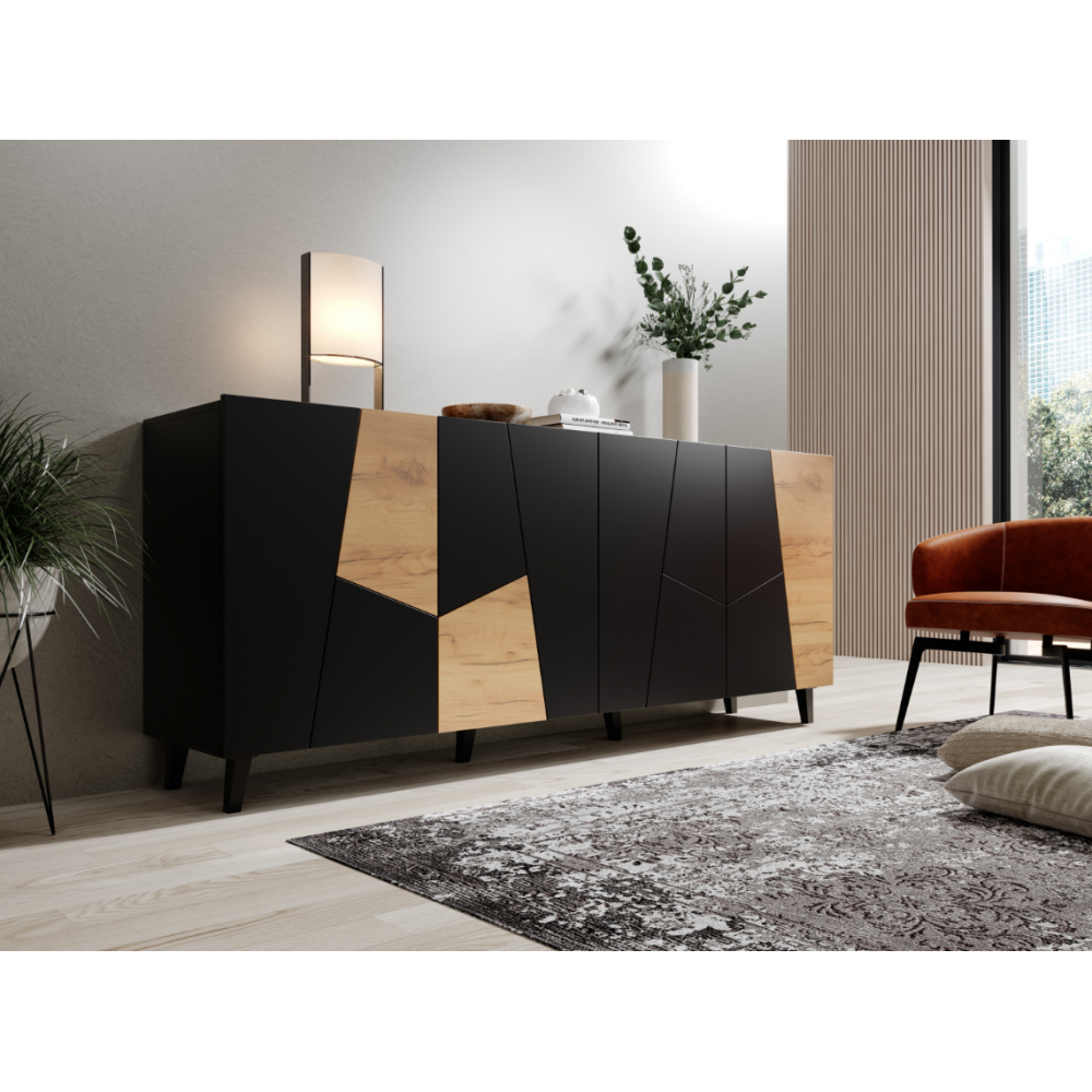 Medžiagos: korpusas – Laminuota MDP 16 mm, fasadas – frezuota MDF 16 mm su matomomis plokštės jungtimis, kojelės plastikinės