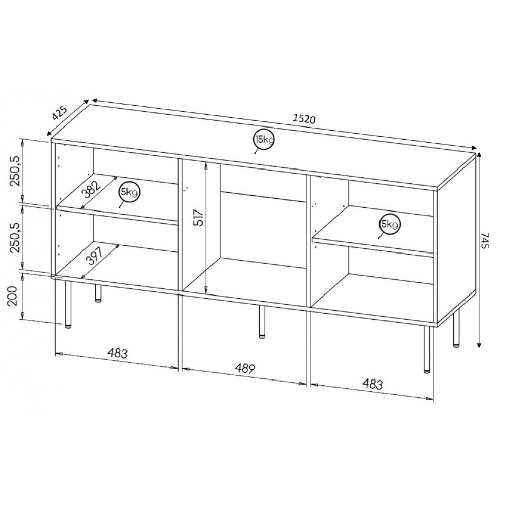 Medžiagos: Korpusas – 16 mm Laminuota MDP, fasadas – 16 mm frezuota MDF, kojelės metalinės
