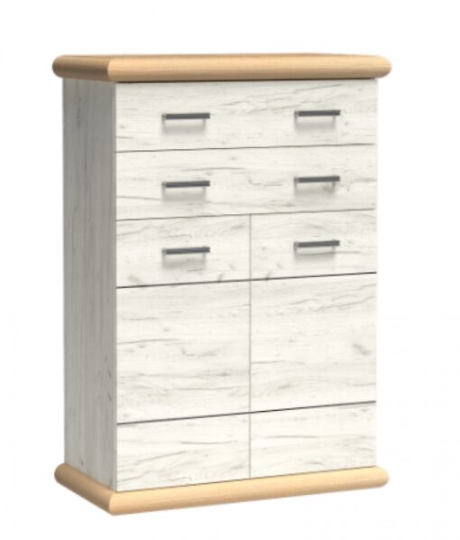 Sveiki,atsakymai į jūsų užklausą: prekė supakuota ir sukomplektuota puikiai. Komodos fasado plokštė kokybiška, susirenka aiškiai pagal instrukciją. Nuvylė tik šoninių plokščių briaunų laminavimo kokybė. Atrodo lyg būtų popierinis laminatas.