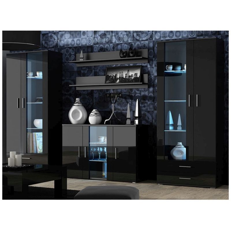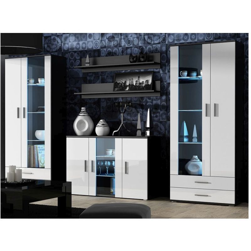– 2x Vitrina S6 2D2S (A / p / i-192/80/41 cm) sudaro su dviem stalčiai ir dvidurė dalis iš dalies įstiklinti, kurios viduje šešios lentynos