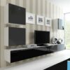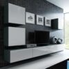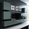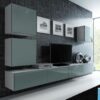 -2x televizoriaus staliukas 140 (A/P/G-30/140/40 cm) – du fasadai, atidaryti PUSH-CLICK sistema, viduje yra dvi kameros, pakabintas televizorius