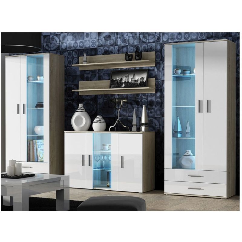 – 2x Vitrina S6 2D2S (A / p / i-192/80/41 cm) sudaro su dviem stalčiai ir dvidurė dalis iš dalies įstiklinti, kurios viduje šešios lentynos