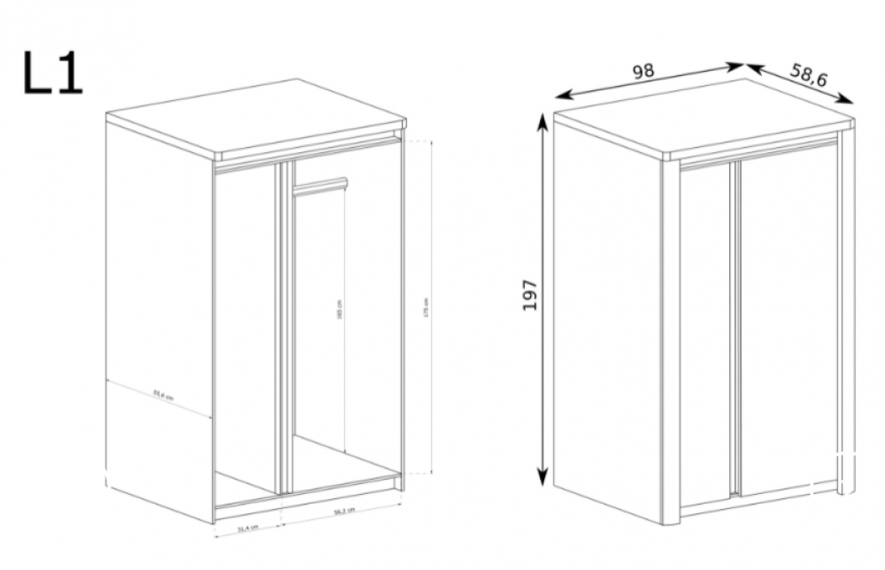 Matmenys (P/A/G): 98/197/59 cm