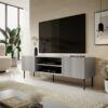 Tstand, Matmenys: 180/42/57 cm, Medžiaga: laminated chipboard/laminated MDF/kojos – metal, spalva: carcass – šviesi pilka, kojos – juoda