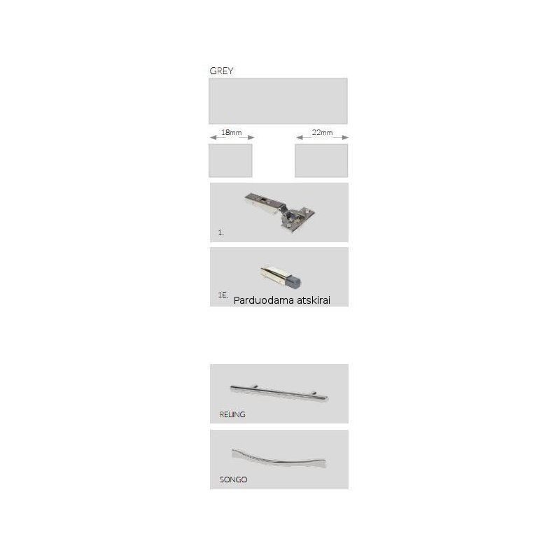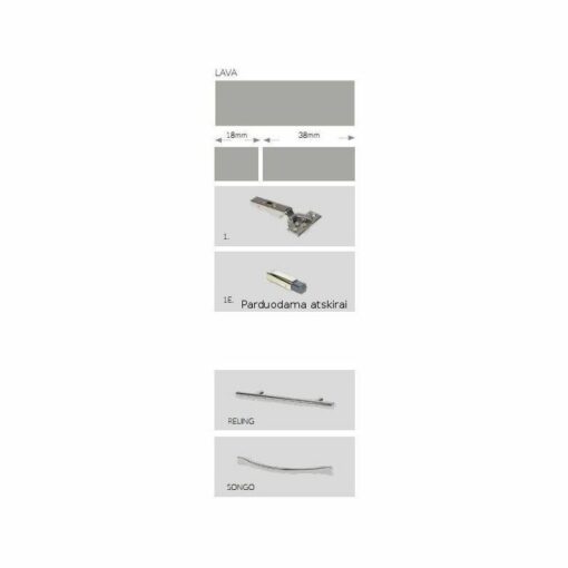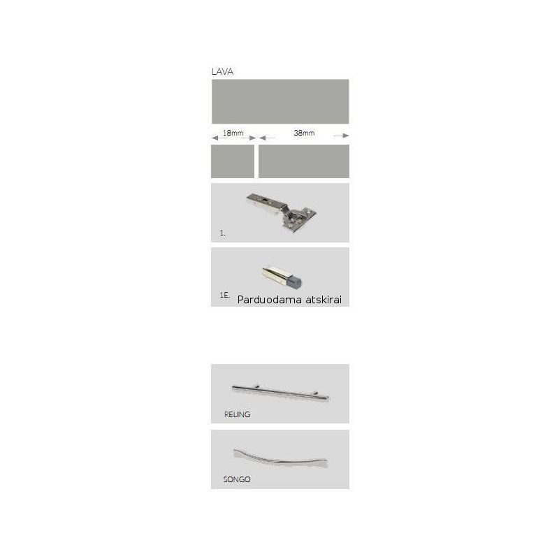 Galimos korpuso spalvos: Pilka (18 mm storio), Balta (18 mm storio) arba Lava (18 mm storio)