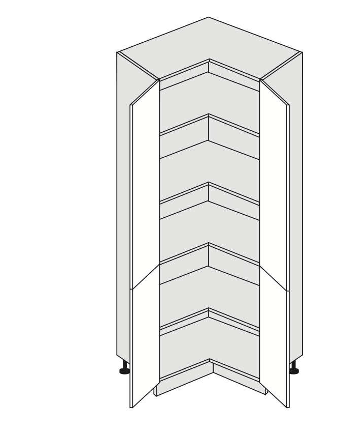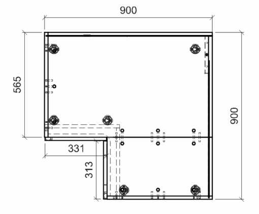 Spintelė turi reguliuojamus tvirtinimus kurie palengvina spintelių kabinimą ant lengvo tvirtinimo juostos.