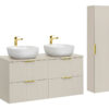 Pasirinkite vonios baldus, kurie ne tik papuoš jūsų erdvę, bet ir suteiks komfortą bei funkcionalumą. Adel Cashmere kolekcija, pasižyminti kašmirine spalva, idealiai tiks tiek moderniam, tiek klasikiniam interjerui.