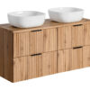 Frontai su moderniais frezavimo ryflais ir įvairios apdailos galimybės, tokios kaip blizgūs auksiniai, chrominiai ir matiniai juodi akcentai, suteikia komplektui prabangią ir rafinuotą išvaizdą, kuri pabrėžia jūsų vonios unikalumą.
