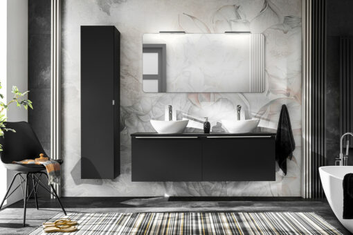 Pasinerkite į modernumo ir elegancijos pasaulį su vonios baldų komplektu Santa Fe Black. Šis komplektas sukurtas siekiant suteikti jūsų vonios kambariui unikalų karakterį, derinant inovatyvius sprendimus ir stilingą dizainą.