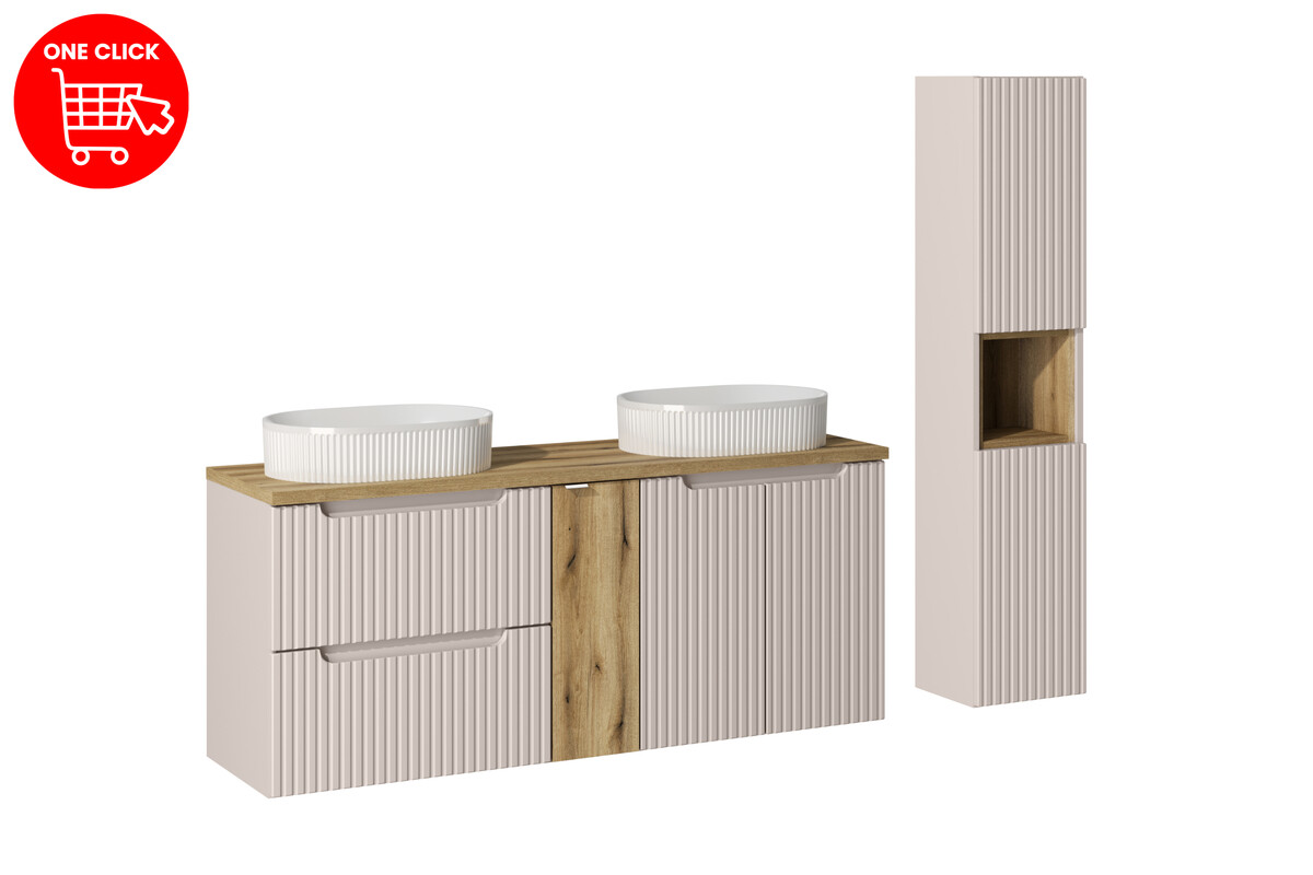 Nova Cashmere SET-NOC B OAK 140 cm D/S UN BEYOND 5 WH HC yra idealus pasirinkimas tiems, kurie nori apjungti estetiką ir praktiškumą savo vonios kambaryje. Šis komplektas sukuria harmoningą ir šiuolaikišką aplinką, puikiai tinkančią bet kokiam interjerui.