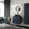 Šis vonios baldų komplektas susideda iš penkių kruopščiai suderintų elementų, kurie kartu sukuria elegantišką ir nuoseklų vaizdą. Kolekcija Elegance Blue išsiskiria moderniu požiūriu į klasiką, harmoningai derindama elegantiškumą su subtiliais moteriškais akcentais.