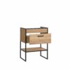 Dėl ąžuolo spalvos laminuotos lentos ir metalo derinio mes gauname netradicinius palėpės stiliaus baldus.