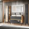 Ši spintelė buvo sukurta ne tik estetinei vertei, bet ir funkcionalumui. Integruota praustuvė užtikrina, kad turėsite pakankamai vietos kasdieniams vonios reikmenims. Minimalistinis dizainas leidžia spintelę lengvai derinti su kitais vonios baldais, suteikiant kambariui harmoniją ir vientisumą.