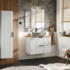 Mūsų vonios baldų komplektai siūlo puikų sprendimą, jungiantį modernų dizainą ir patogumą. Kiekvienas rinkinys yra suprojektuotas taip, kad maksimaliai išnaudotų erdvę ir atitiktų visus Jūsų poreikius. Dviejų praustuvų variantai ypač praverčia šeimoms, leidžiant greičiau ir patogiau pasiruošti kasdienai.