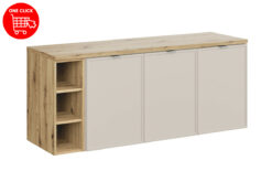 Spintelė su tyliu durų uždarymo mechanizmu garantuoja komfortą ir ramybę kasdienio naudojimo metu. Pagaminta iš patvarių MDF plokščių ir Laminuotos MDP, ji užtikrina ilgaamžiškumą, todėl nereikės nerimauti dėl greito nusidėvėjimo.