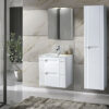 Pristatome modernų vonios baldų komplektą, kuris pridės elegancijos ir funkcionalumo jūsų vonios kambariui. Šis komplektas, sukurtas atsižvelgiant į šiuolaikinį dizainą, yra puikus sprendimas tiems, kurie vertina stilių ir patogumą.