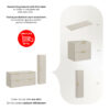 Su šiuo komplektu jūsų vonios kambarys taps ne tik patogiu, bet ir stilingu erdvės, kurioje galėsite atsipalaiduoti ir mėgautis kasdieniais ritualais. Nepraleiskite progos atnaujinti savo vonios kambarį su šiuo išskirtiniu baldų sprendimu!