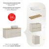Komplekto dizainas yra ne tik estetiškas, bet ir funkcionalus. Plačios saugojimo galimybės leidžia išlaikyti tvarką, o elegantiška išvaizda užtikrina, kad jūsų vonios kambarys atrodytų vizualiai patrauklus.