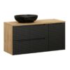 Komplektas, apimantis elegantiškas spintas ir puikiai parinktą stalviršį, sukuria harmoningą aplinką. Juodos matinės ir aliejuoto ąžuolo spalvų derinys puikiai tinka tiek klasikiniam, tiek moderniam interjerui.