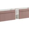 Šis baldų komplektas, sudarytas iš trijų harmoningai derančių elementų, sukuria estetiškai patrauklią kompoziciją, puikiai tinkantį moderniam interjerui. Antikinė rožinė spalva suteikia šilumos ir jaukumo, idealiai derindamasi su įvairiomis dizaino koncepcijomis.