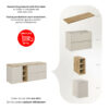 Naudodami šį komplektą, pajusite, kaip patogiai ir maloniai galite naudotis savo vonios kambariu. Dėl išmaniosios išdėstymo ir funkcinių elementų, kurie skirti palengvinti jūsų kasdienybę, pasitikite savo vonios patirtį su nauju gyliu ir patogumu.
