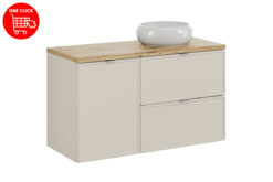 Vonios baldų komplektas CASHMERE yra ne tik estetiškai patrauklus, bet ir itin praktiškas. Plačios erdvės stalviršyje užtikrina, kad visiems kasdieniams daiktams pakaks vietos. Išskirtinės spintelės savybės leidžia patogiai organizuoti vonios reikmenis, taip užtikrinant tvarką ir eleganciją.