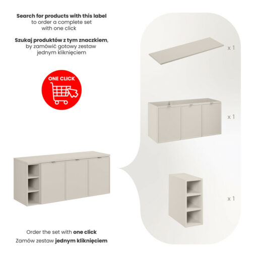 Papuoškite savo vonios kambarį šiuo stilingu ir funkcionaliu baldų komplektu CASHMERE. Jo unikalus dizainas suteiks ne tik estetiką, bet ir praktiškumą, kurį vertinsite kiekvieną dieną.