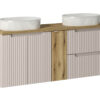 Šis vonios baldų komplektas pasižymi moderniu ir elegantišku dizainu, kuris neabejotinai papuoš jūsų vonios kambarį. Ąžuolo Coast Evoke ir Kašmiro matinės spalvos harmonizuoti deriniai sukurs šviesią ir švarią aplinką, tobula, deranti su bet kuria vonios įranga.