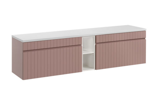 Pasirinkite šį rinkinį, kuriame rasite dvi spinteles praustuvui, stalviršį ir atvirą spintelę, užtikrinančias estetinį ir funkcionalų vonios kambario sprendimą.