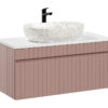 Baldai pasižymi frezuotais vertikaliais grioveliais, kurie suteikia papildomo švytėjimo ir charakterio. Modernus dizainas, kartu su patentuotais elementais, užtikrina, kad jūsų vonios kambarys atrodys itin stilingai.