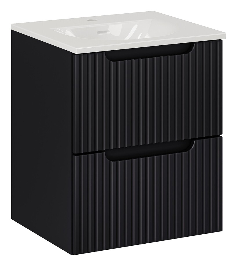 Vonios baldai su unikaliu dizainu, turintys frezuotus vertikaliais rifo elementais, kuria išskirtinį charakterį. Juoda matinė apdaila ne tik prideda elegancijos, bet ir yra lengvai derinama su kitais interjero elementais.