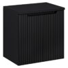 Frezuoti vertikalūs grioveliai ant priekinių panelių prideda modernumo, o juoda matinė spalva suteikia rafinuotumo. Šis dizainas ne tik patrauklus, bet ir praktiškas, lengvai derinamas su kitais interjero elementais.