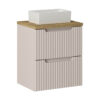 Rinkinyje naudojamos skoningos spalvos, tokios kaip kaszmiro matinė ir dėbų coast evoke, kurios suteikia vonios kambariui išskirtinį ir šiuolaikišką charakterį. Vertikalios frezuotos juostelės ant fasadų pridės elegancijos, o harmoningas derinys su kaszmiro rankenėlėmis užtikrins vientisumą ir subtilumą.