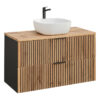 Komplektas apima aukštos kokybės praustuvą ir elegantiškus stalviršius, užtikrinančius ne tik estetinį, bet ir praktišką sprendimą. Dviejų stalčių spintelė suteikia pakankamai vietos visoms jūsų asmeninėms reikmėms, o erdvus stalviršis leidžia patogiai naudotis vonios kambariu.