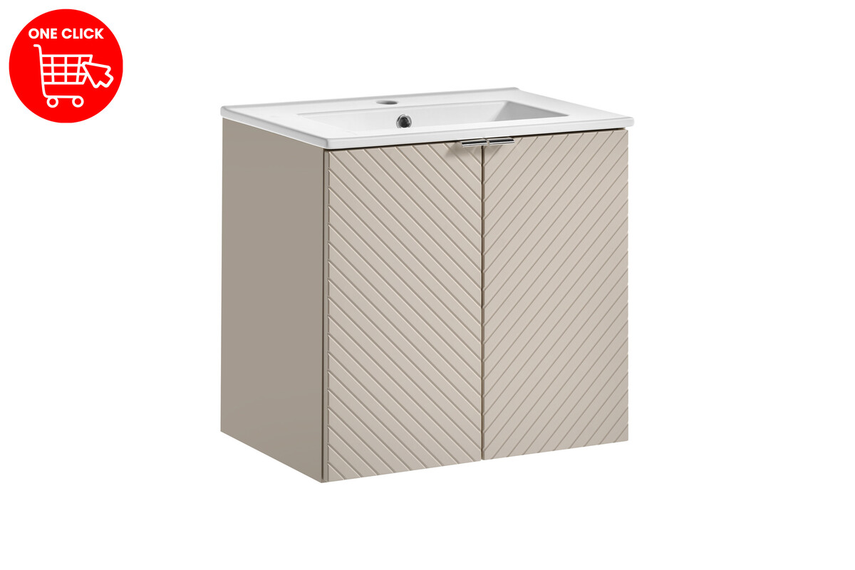 Šis vonios baldų komplektas, sudarytas iš dviejų dalių, apjungia modernų dizainą ir praktiškumą, kuris puikiai tinka bet kuriai vonios patalpai. Kašmiro matinė spalva leidžia lengvai pritaikyti komplektą įvairiems interjero sprendimams, todėl jis taps ne tik patogiu, bet ir stilingu elementu jūsų namuose.