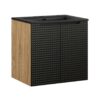 Kolekcija Luxor Black išsiskiria savo rafinuotu moderniu dizainu. Tamsiai matinė spalva dera su ąžuolo aliejuoto paviršiumi, suteikdama elegancijos ir šilumos pojūtį. Šie baldai taps puikiu akcentu jūsų vonios interjere, pabrėždami jūsų individualų stilių.