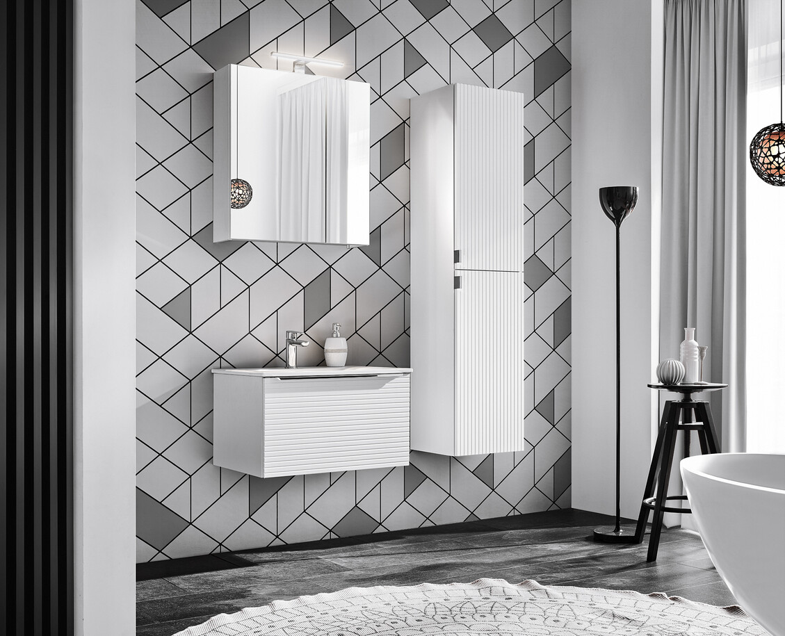 Balta spalva ir modernus dizainas leidžia baldams lengvai įsilieti į įvairias interjero stilius. Išskirtinė vonios spintelė su veidrodžiu ne tik vizualiai išplečia erdvę, bet ir suteikia galimybę laikyti būtinus vonios reikmenis patogiai ir tvarkingai. Aukšta spintelė ir praustuvė kartu su komplektu sukuria stilingą vaizdą, kuris džiugins akis ir užtikrins patogumą kiekvieną dieną.