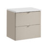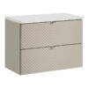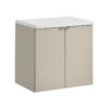 Komplekto spalvos — balta matinė ir kašmiro matinė — užtikrina, kad baldai atrodys švariai ir stilingai. Frezuotas raštas durelių paviršiuje prideda šiek tiek tekstūros, todėl baldai atrodo ne tik elegantiškai, bet ir jausmas naudojant juos yra malonus.