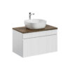 Šis rinkinys, sudarytas iš vonios spintelės, stalviršio ir praustuvo, ne tik suteikia patrauklią išvaizdą, bet ir užtikrina patogumą kasdieniame naudojime. Balta matinė spalva harmonijai užtikrinti puikiai derės su įvairiais interjero stiliais, o natūralios medžiagos prideda šilumos ir jaukumo.