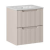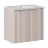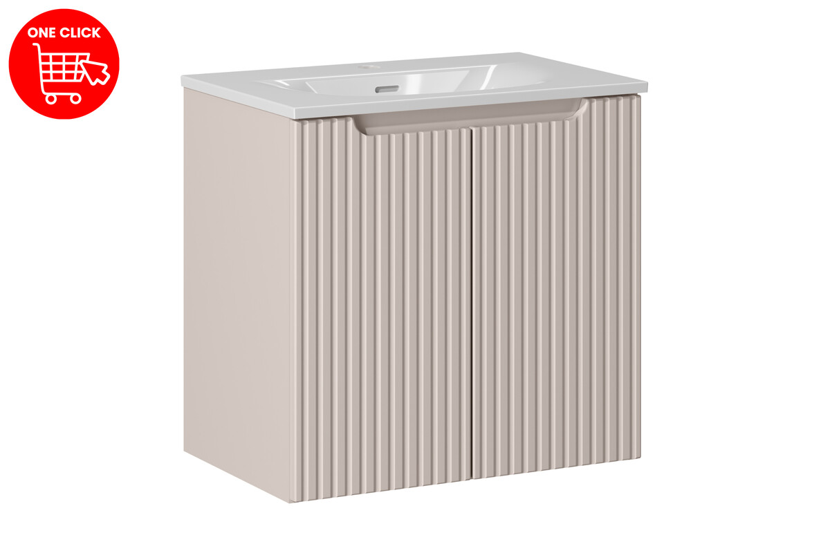 Šio komplekto dizainas neabejotinai atliks svarbų vaidmenį bet kurioje vonios patalpoje. Vonios spintelės ir praustuvo kombinacija ne tik suteikia patogumą, bet ir prideda stiliaus. Šie baldai pasižymi vertikaliais frezuotais raštais, kurie sukuria unikalią estetiką. Matinė kasmiro spalva tobulai dera su moderniu interjeru, sukurdama harmoningą ir šiltą atmosferą.