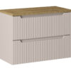 Šis komplektas susideda iš trijų elementų, kurie kartu sukuria idealią vonios baldų sistemą. Dėl efektingų frezuotų vertikalių griovelių, būdingų baldo durelėms, baldai išsiskiria savo unikaliu charakteriu. Kasmiro tonas puikiai derinasi su bendru vonios interjeru, užtikrinant harmoningą vaizdą.