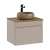 Vertikalių frezavimo raižiniai baldų frontuose suteikia originalumo bei unikalumo. Tokie dizaino elementai leidžia pabrėžti modernumą, kartu išlaikant praktinį baldo pobūdį. Šis rinkinys yra ne tik naudinga vonios interjero dalis, bet ir puiki dekoracija, traukianti akį.