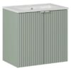 Elegantinių vertikalių frezuotų ryflių dekoras ne tik prisideda prie estetinės išvaizdos, bet ir suteikia individualumo visam komplektui. Šis stiliaus pasirinkimas suteikia šviesos ir šilumos pojūtį jūsų vonios kambaryje.
