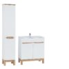Šis komplektas apima visus būtinus elementus, reikalingus patogiai ir estetiškai vonios erdvei. Jame yra vonios spintelė bei praktiška praustuvė, sukuriančios idealią kombinaciją, leidžiančią efektyviai išnaudoti erdvę. Pasirinkus šį komplektą, visada galėsite būti tikri dėl jo kokybės ir ilgaamžiškumo.