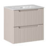 Šis vonios baldų komplektas pasižymi frezuotais vertikaliais raštais ant fasadų, kurie suteikia ne tik estetiką, bet ir išskirtinumą. Kašmiro matinė spalva puikiai dera su moderniais interjero sprendimais, taip užtikrinant harmoningą erdvę. Rankenėlės, suderintos su komplekto dizainu, dar labiau pabrėžia jūsų vonios unikalumą.